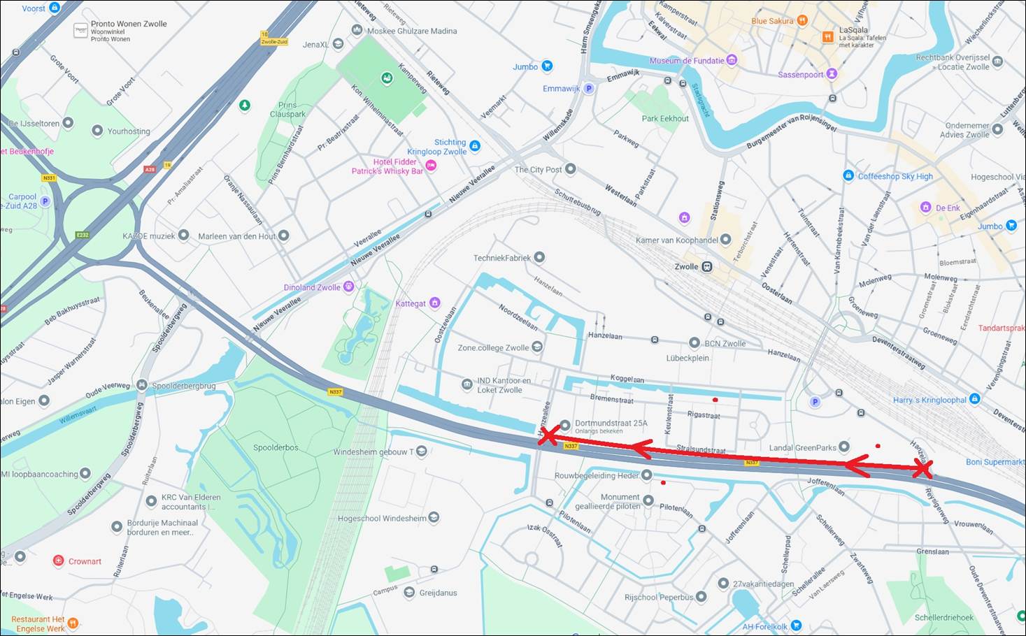 Stroomnetbeheerder Enexis bereidt de vervanging van het Middenspanningsstation op de Dortmundstraat in Zwolle voor. Dit gaat gepaard met een tijdelijke stremming van de IJsselallee (N337) in Zwolle van 22-10-2025 18:00u tot 23-10-2025 18:00u. De afsluiting is van toepassing in oostelijke richting, naar de rotonde Zwolle-Zuid bij de A28. We bereiden dit project voor in samenwerking met de gemeente Zwolle.